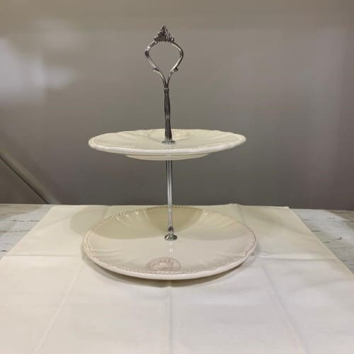 / Plato Para Masas 2 Pisos Cerámica Crema Queen