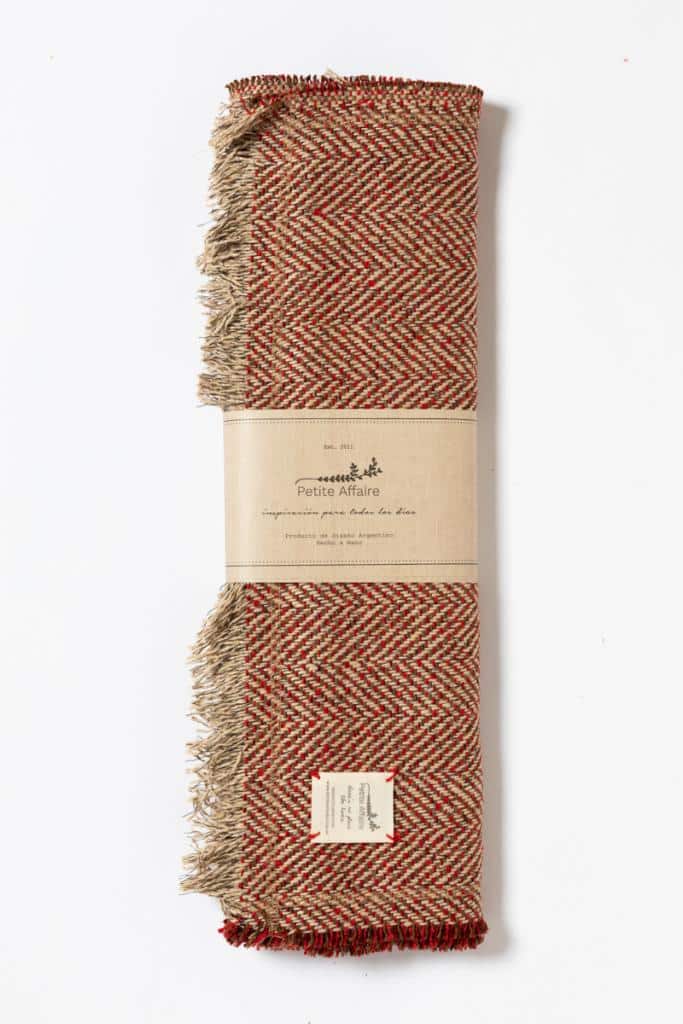 Camino tejido con terminaciones al corte desflecado y bordado en su recorrido. El desflecado lo hace ser un camino artesanal aportando a la mesa un look cálido y vistoso.
