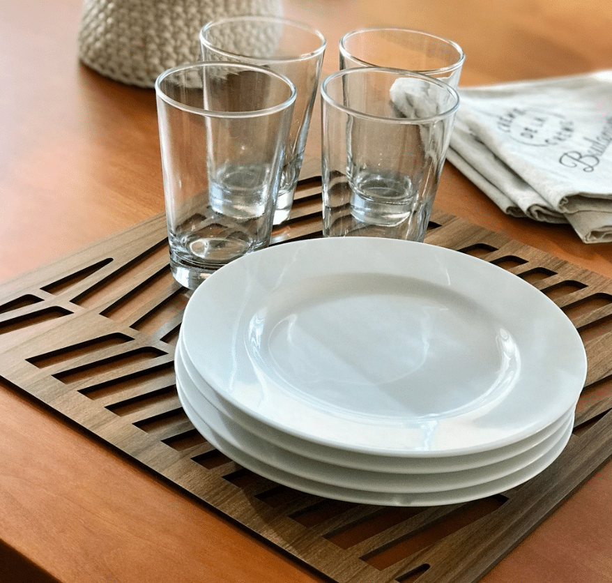 Posafuentes Con Diseño De Dibujo Geométrico Calado. Posafuentes Con Diseño De Dibujo Geométrico Calado.
