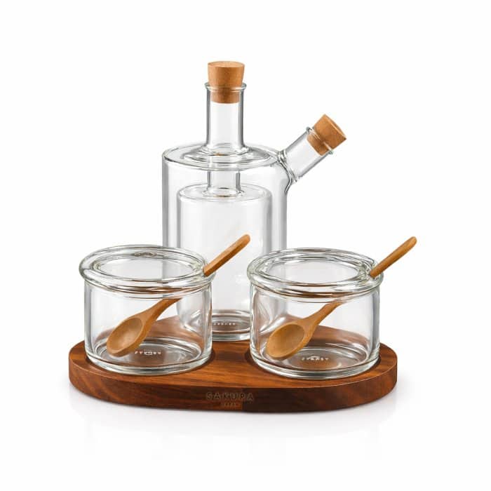 La Tavola Collection combina diseño refinado y materiales de alta calidad para realzar cada momento en la mesa. Elaborada en madera de acacia y vidrio, esta línea ofrece desde sets de saleros y pimenteros hasta aceiteras, condimenteros y mantequeras, uniendo funcionalidad y estética en piezas que destacan por su durabilidad y estilo. Perfecta para quienes valoran los detalles que hacen única la experiencia de servir y compartir.