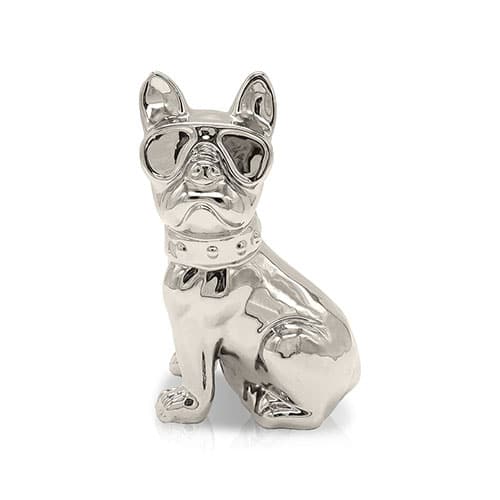 Lo lúdico y desafiante de estos elementos deco suman un aire de elegancia y tendencia a tus bibliotecas, y estantes. Canchero perrito de cerámica plata de 13x8x18cm.