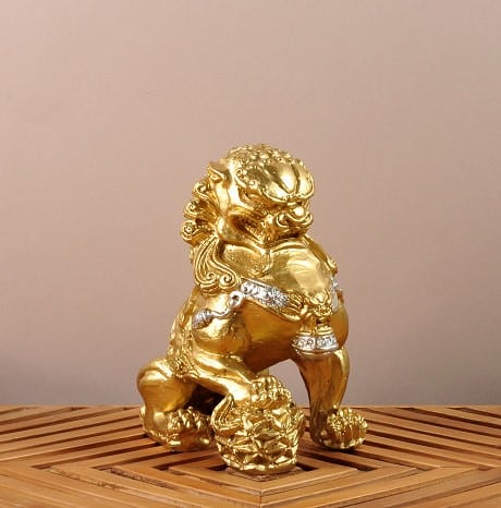 PERRO FU DORADO DE RESINA