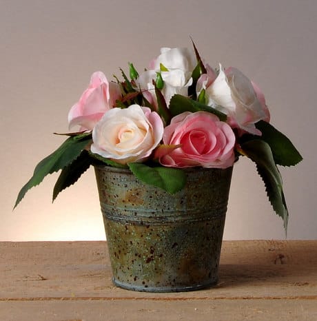 Rosas En Maceta De Metal Rosas En Maceta De Metal